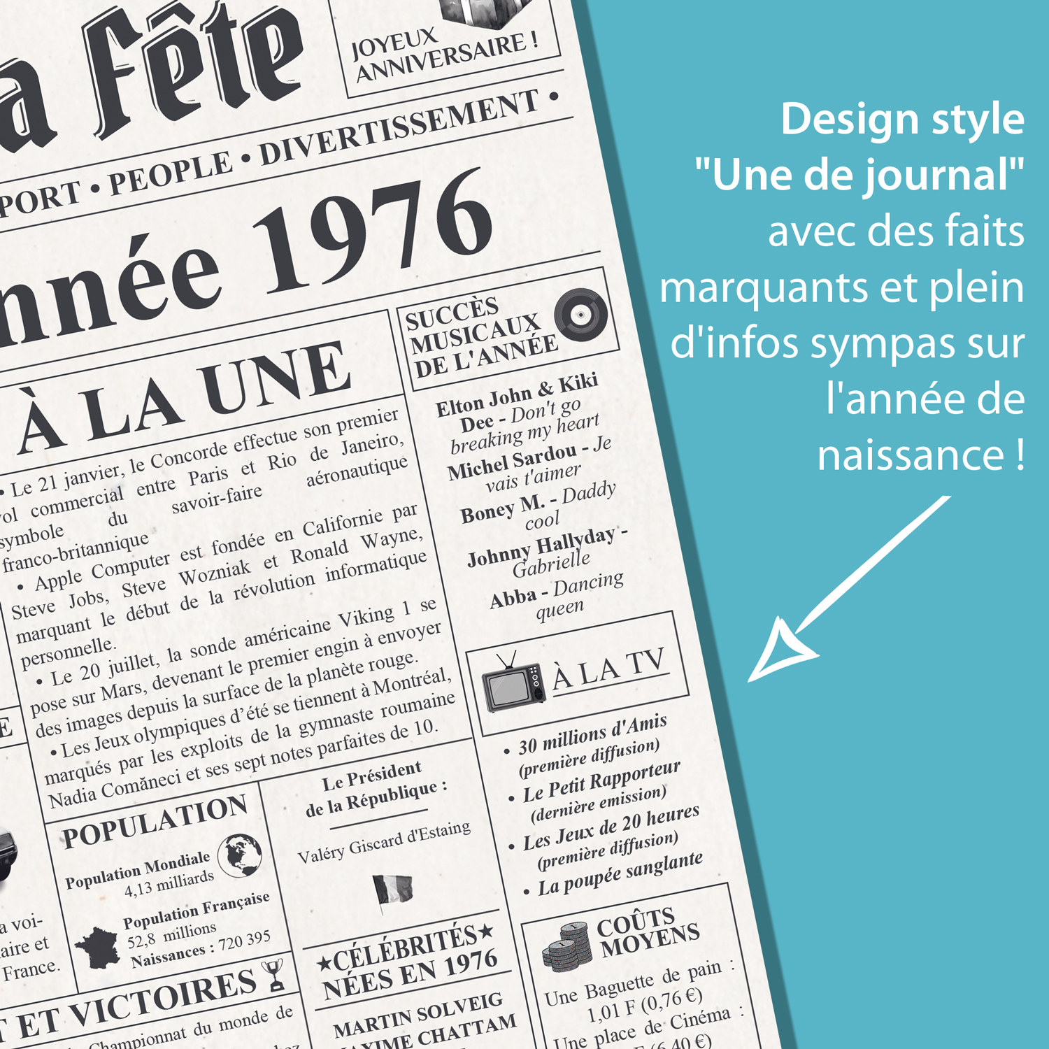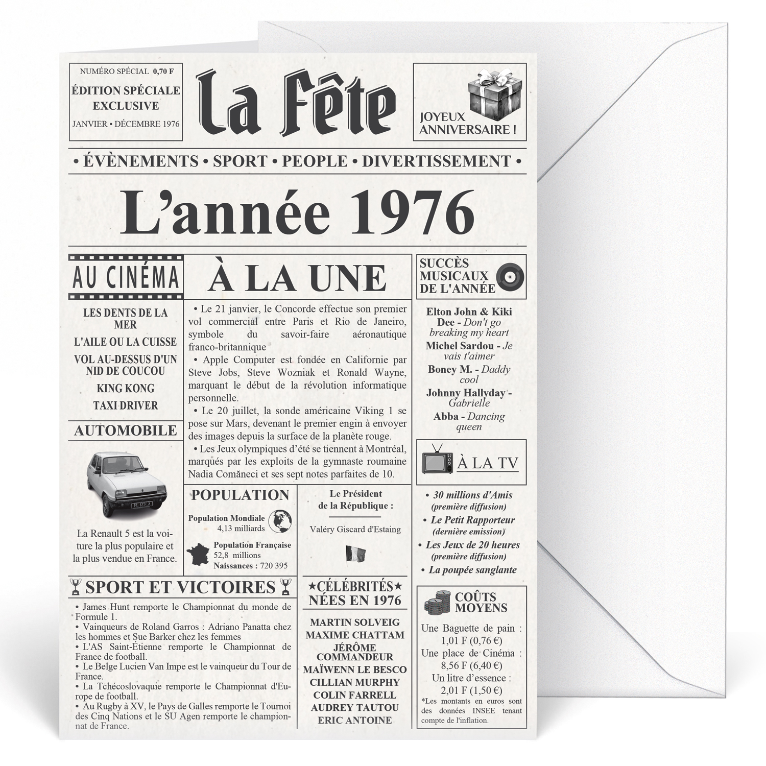 Soyez le premier à laisser votre avis sur “Carte Anniversaire 50 ans Design Journal Année 1976”